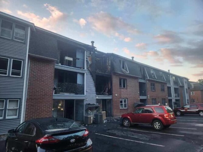 NASHUA - Sixty-five residents were forced from their apartments when a two-alarm blaze broke out at 74 Bluestone Dr. just before 2 a.m. on July 16.