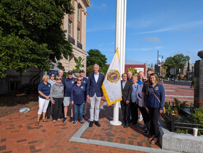 Nashua Mayor Jim Donchess joined with members of the Nashua Lions Club Friday, September 22nd to raise the Lions International flag in front of City Hall to commemorate the chartering of the club on September 26, 1923.