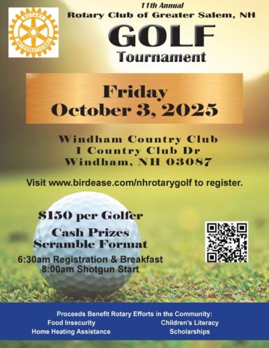 WINDHAM - The Rotary Club of Greater Salem will be hosting its 11th annual golf tournament on Oct. 3 at Windham Country Club, 1 Country Club Dr.
