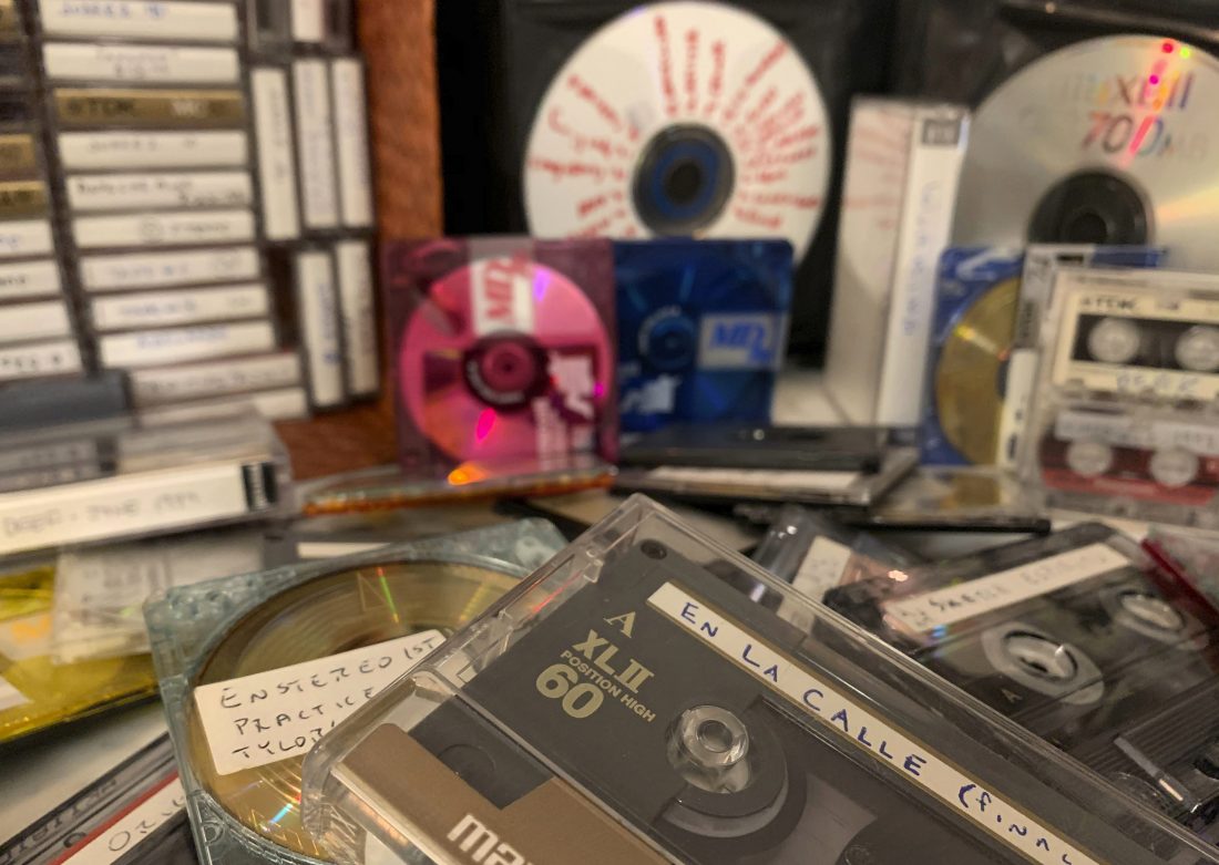 A stack of cassettes, MiniDiscs and CDs representing some of AP journalist Jaime Holguin’s decades-rich audio archive sit on a table, Sunday, July 12, 2020, in New York. (AP Photo/Jaime Holguin)