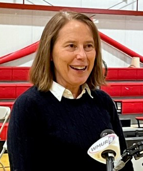 NHDOE photo Sara Casassa, a South Hampton educator selected as New Hampshire's 2022 Teacher of the Year, speaks with media representatives during the 19th annual Leadership in Education awards ceremony in Manchester. (NHDOE photo)