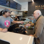 Customer Dan Jordan, an Army veteran and longtime Nashuan, and his wife, “Peg,” are among those pleased to see the grand re-opening, celebrated on Sunday, June 17. A visit by Dan on Monday, June 25, to get coffee and a donut was capped with a hug by crew member Sara Crowley, of Merrimack.