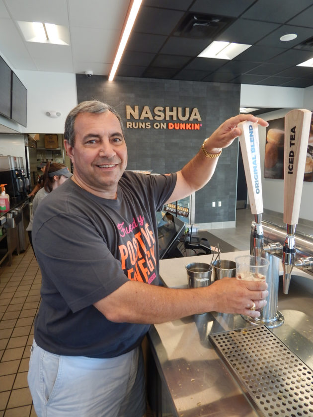 John Motta, a Nashuan since 1982, has been a Dunkin’ Donuts franchise holder for 38 years. He owns nine local shops and 20 in the Virginia Beach area. He recently said the Nashua Dunkin’ he purchased that year is now the area’s flagship for the rebranding. It is located across the street from the shopping complex landmarked by Whole Foods Market and AC Moore.