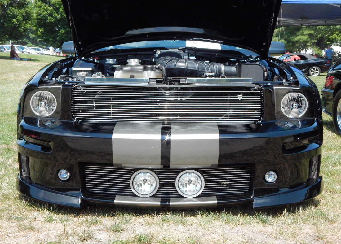 Staff photo by Dean Shalhoup The front lower valance on Merrimack resident Blake Norton's supercharged 2006 Mustang GT is just inches off the ground, giving the classic car a sleek look. It was among scores of Mustangs and other makes and models on display at Sunday's Mustang Mania show at Anheuser-Busch in Merrimack.