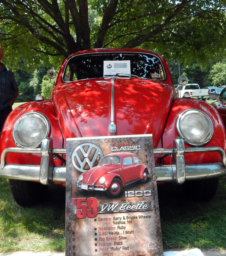 - Staff photo by Dean Shalhoup Garry and Brooke Wheeler, Nashua residents who own this 1959 Volkswagen Beetle, had a little fun with their sign, which was on display along with scores of other vintage and classic cars of all makes and models at Sunday’s Mustang Mania show at Anheuser-Busch in Merrimack.