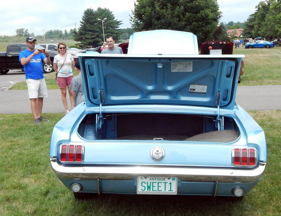 But it was Hunt’s Tahoe Tourquoise Mustang with the original, near-perfect vinyl top that caught many an eye Sunday on the grounds of the Anheuser-Busch brewery, where the Salem couple joined scores of vintage and classic car owners for a show called Mustang Mania – although it was open to all vehicle makes and models.