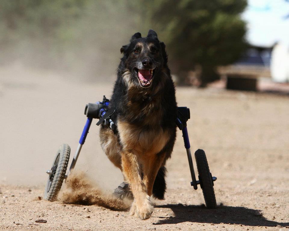 - Courtesy photo A happy shepherd runs with the help of new wheels.