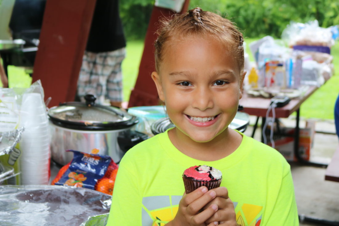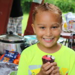 Javian Rivera, age 8, enjoying a Pokemon ball cupcake at the Pokemon Go Community Day Barbecue.