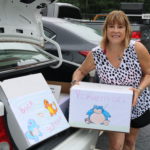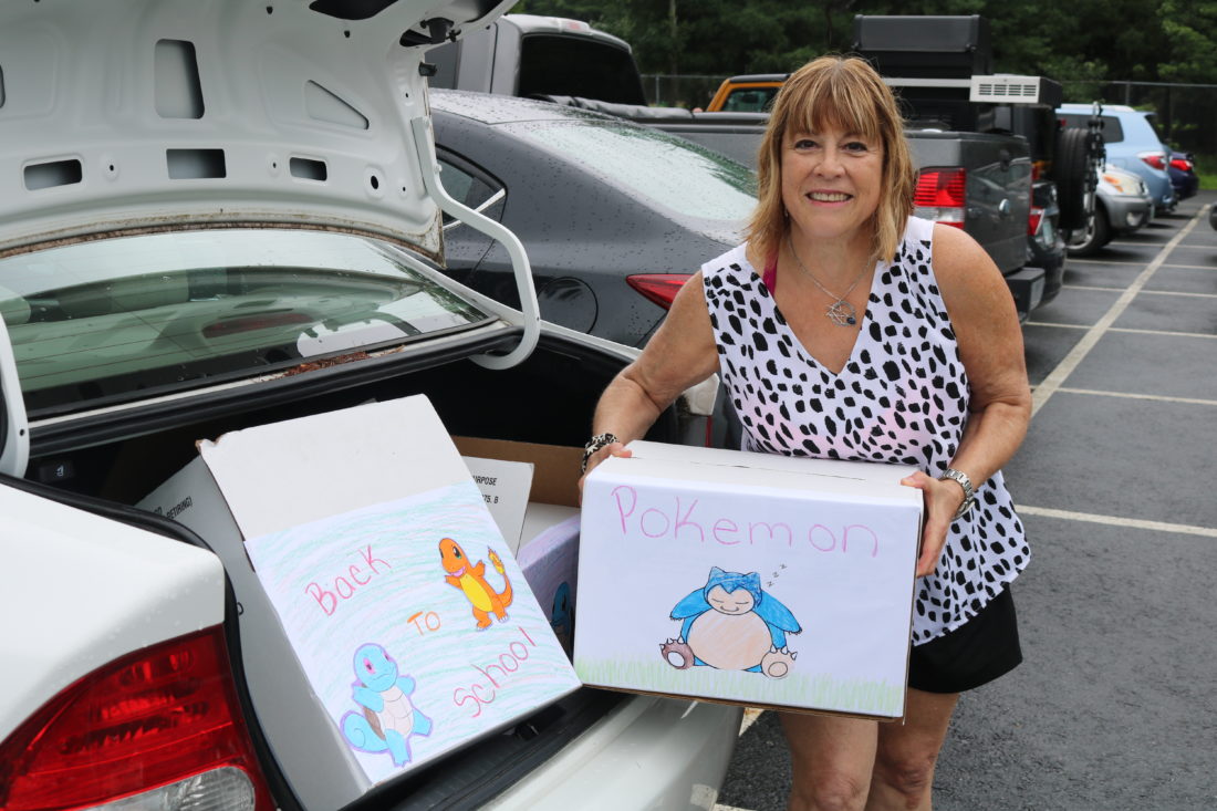 - Liz Racioppi loading back-to-school donation boxes decorated by Nani and Javian Rivera into her car.