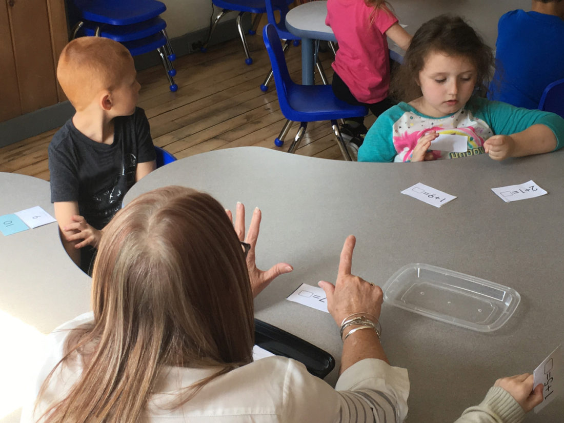 Courtesy photo Trish Stansfield teaches addition to young children.