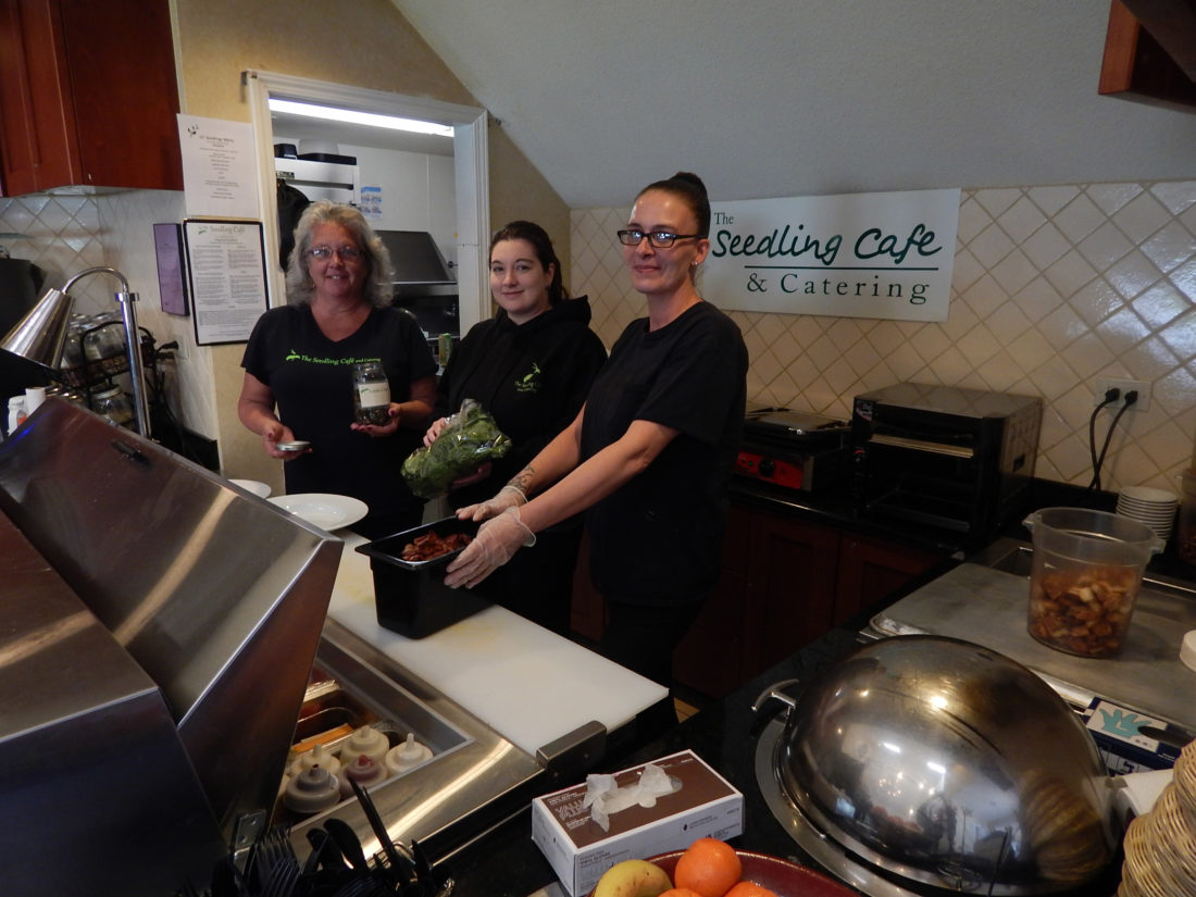 Photo by LORETTA JACKSON Those who welcome guests to The Seedling Cafe & Catering, a breakfast-and-lunch spot that also provides corporate catering to numerous regional businesses, includes restaurateur Karen Theriault, left, the cafes owner, seen here with longtime staffers Leighanne and Amanda, right, whose dedicated teamwork has helped elicit rave reviews for the cafe, previously located on Temple Street in Nashua.