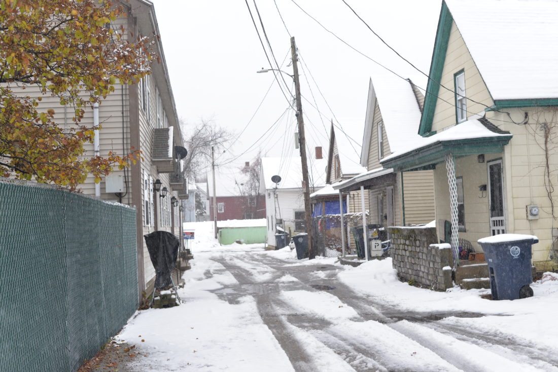 Staff photo by Adam Urquhart This dead-end street on the edge of Nashua’s Tree Streets Neighborhood should soon see some improvements, as NeighborWorks Southern New Hampshire received funds from area businesses and charitable sources to redevelop the six-unit property.