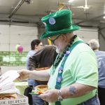 Telegraph photo by MATHEW PLAMONDON Phillip Durno grabs some pizza prior to the start of the head shaving.