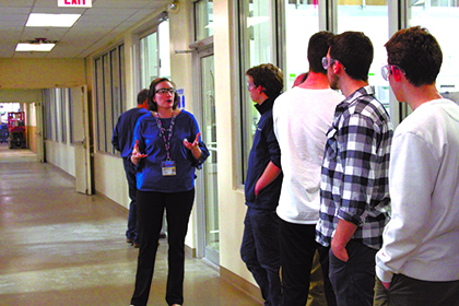Telegraph photo by GRACE PECCI Hitchiner Manufacturing Co. Senior HR Generalist Julia Fretwell takes Milford High School students on a tour of the company’s facility in April. Hitchiner has partnered up with Milford High School for a new Manufacturing Exploration & Externship program which will allow students to gain experience out in the field while earning both classroom and college credits, and getting paid. The company, along with Spraying Systems Co., were recently recognized for their Work-Based Learning efforts with the “Industry Partner Champion Award.