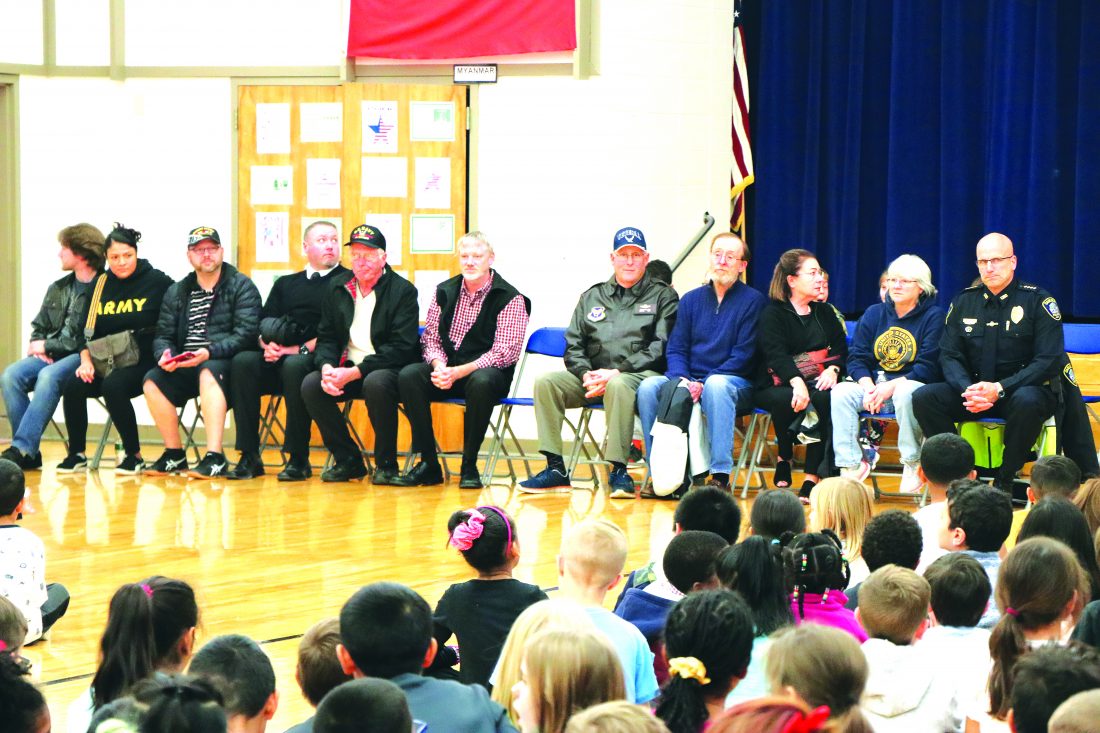 Telegraph photo by GRACE PECCI Officials at Sunset Heights Elementary School honor nearly 20 veterans on Thursday during the annual Veterans Day ceremony. Students were encouraged to invite a veteran to the event.