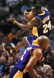- FILE – In this May 13, 2001 file photo Los Angeles Lakers’ Kobe Bryant reaches back for a rebound during the first half of game four of the Western Conference semifinals against the Sacramento Kings in Sacramento, Calif. Bryant, a five-time NBA champion and a two-time Olympic gold medalist, died in a helicopter crash in California on Sunday, Jan. 26, 2020. He was 41. (AP Photo/Mark Terrill, file)