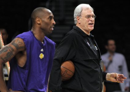 - Los Angeles Lakers guard Kobe Bryant, left, and coach Phil Jackson watch practice for Thursday’s Game 1 of the NBA basketball finals against the Orlando Magic, in Los Angeles on Wednesday, June 3, 2009. (AP Photo/Chris Carlson)