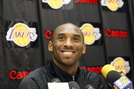 - FILE – In this April 13, 2016 file photo, Los Angeles Lakers forward Kobe Bryant smiles during the first half of Bryant’s last NBA basketball game, against the Utah Jazz in Los Angeles. Bryant is getting advice from Steven Spielberg, J.J. Abrams and Jerry Bruckheimer as he redirects his competitive drive from professional basketball to his publishing and production company. One month after retiring from the NBA, the Los Angeles Lakers star has a new daily routine. “I get up early and I train and I work out. Then I go to the office,” Bryant said in an interview Wednesday, May 18, 2016.(AP Photo/Jae C. Hong, File)