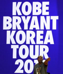 - NBA’s Los Angeles Lakers Kobe Bryant holds his signed basketballs to give his fans after his basketball clinic for youth in Seoul, South Korea, Thursday, July 14, 2011. Bryant is in Seoul during his five-Asian cities tour. (AP Photo/ Lee Jin-man)