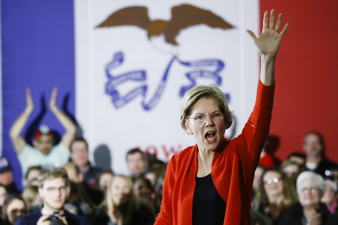 Democratic presidential candidate Sen. Elizabeth Warren, D-Mass., gestures during a campaign event, Sunday, Jan. 26, 2020, in Cedar Rapids, Iowa. (AP Photo/Matt Rourke)