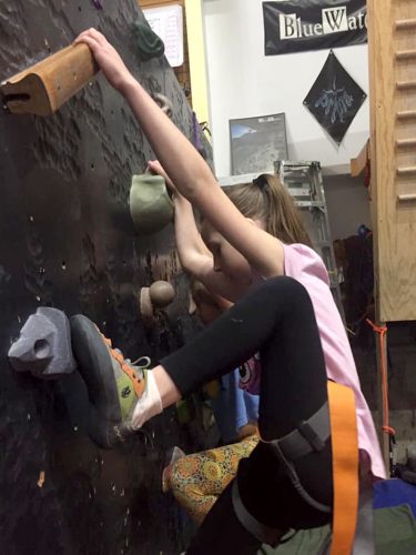 The girls come from Newport, Goshen, Lempster and Claremont. When they saw the new climbing adventure badge, it was their top choice to earn this year. They had never sold Girl Scout fall product before, which is candy and other items. However, they set a goal to sell enough to fund a trip to an indoor climbing gym to earn the badge. They more than doubled that goal in the fall, and had a great time climbing.