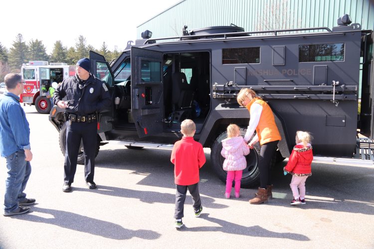 Outside, kids had the chance to “touch a truck’ as they stepped inside a Nashua Police S.W.A.T team vehicle, explored the many bells and whistles of an actual Nashua fire truck, saw the inside of a Lifeline ambulance and took a seat in a Merrimack police car.