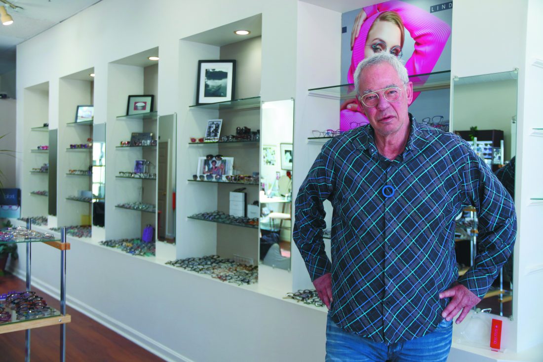 Myoptic owner Bob Cagen said downtown business has been sedate, but he remains open by appointment only to assist customers who require eyeglass repair or replacement. Telegraph photo by GEORGE PELLETIER