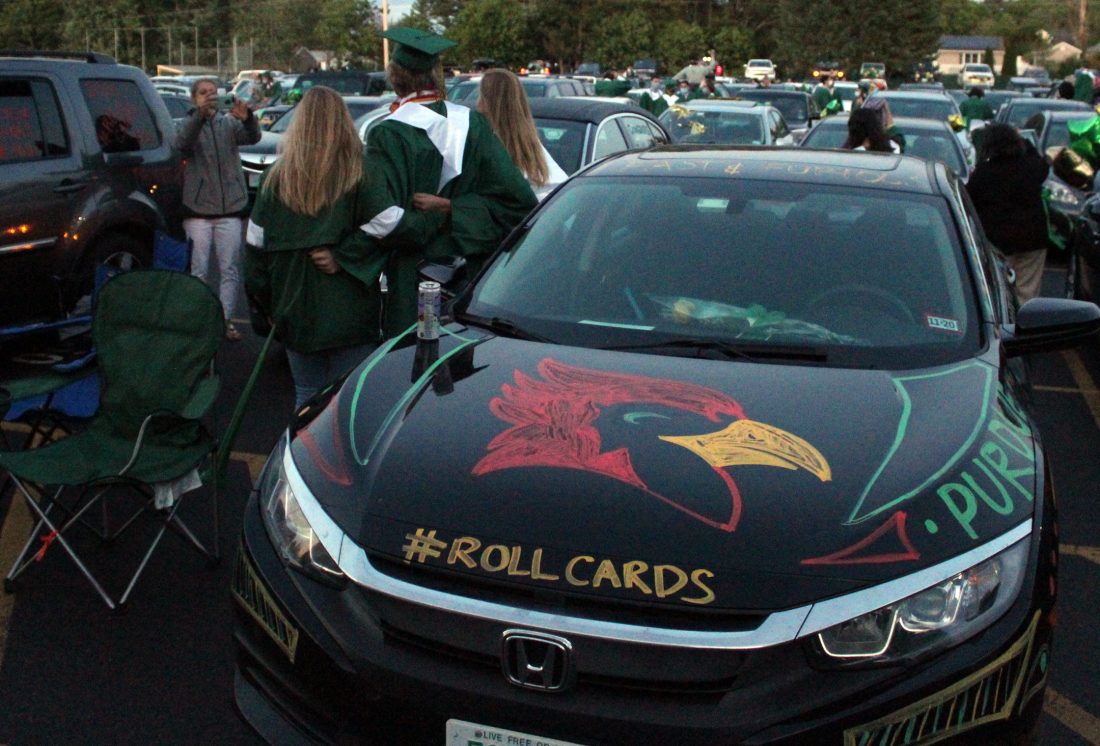 Telegraph photo by DEAN SHALHOUP Many cars and trucks assembled drive-in-theater style for Guertin's unique graduation Sunday night were elaborately decorated in a range of themes.