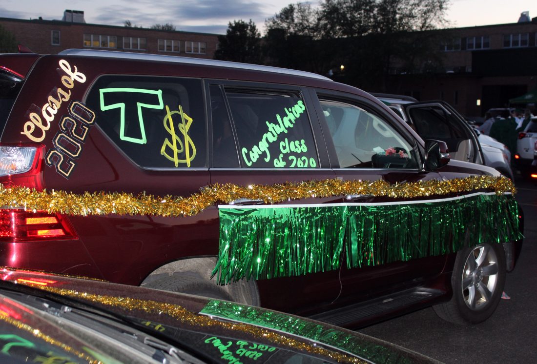 - Telegraph photo by DEAN SHALHOUP Many cars and trucks assembled drive-in-theater style for Guertin’s unique graduation Sunday night were elaborately decorated in a range of themes.
