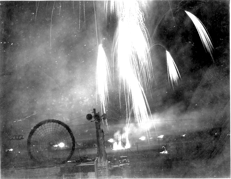 What a public fireworks display looked like a century ago is depicted in this photo posted on Flikr. Note the sparks flying through the air.