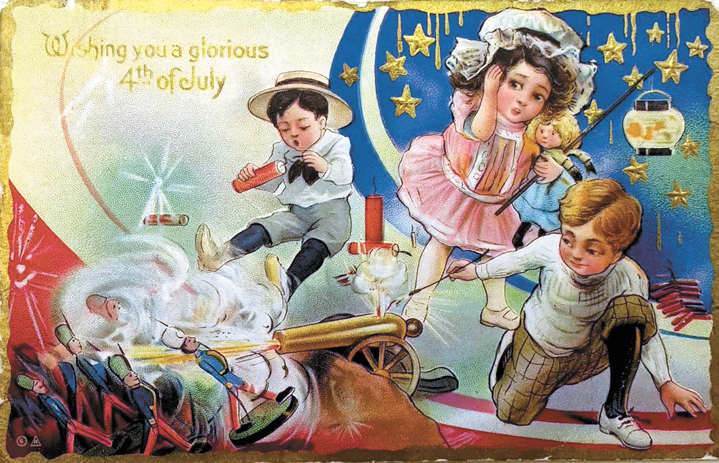 Courtesy photo by Museum of American History A 1920s-era greeting card, like many from that period, shows children interacting with fireworks, an image that surely could not be found today.