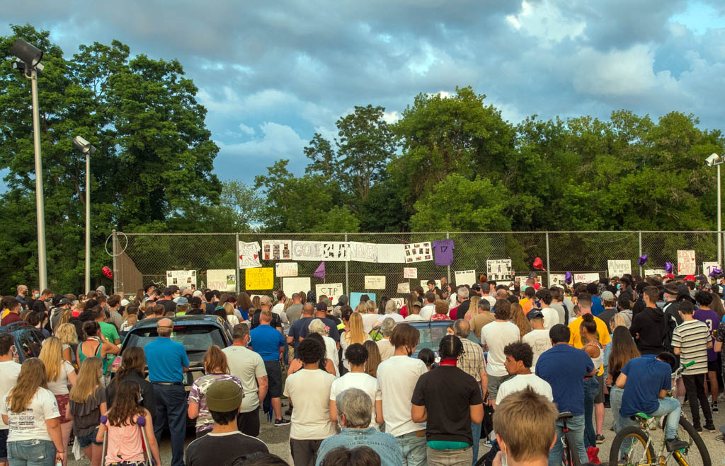 Nearly 1,000 people came together at the park, on Shady Lane adjacent to the New Searles Elementary School, to remember the 15-year-old youth who drowned Friday while swimming with friends in Bass Pond, which is part of the Dunstable Rural Land Trust and just a short distance from the Nashua-Dunstable town line.