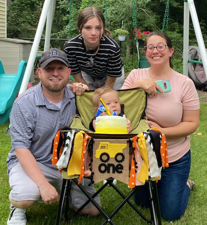 - Courtesy photo Steve and Gillian Adams, with daughter Rachel and son Chase, in the yard of their Hudson home.