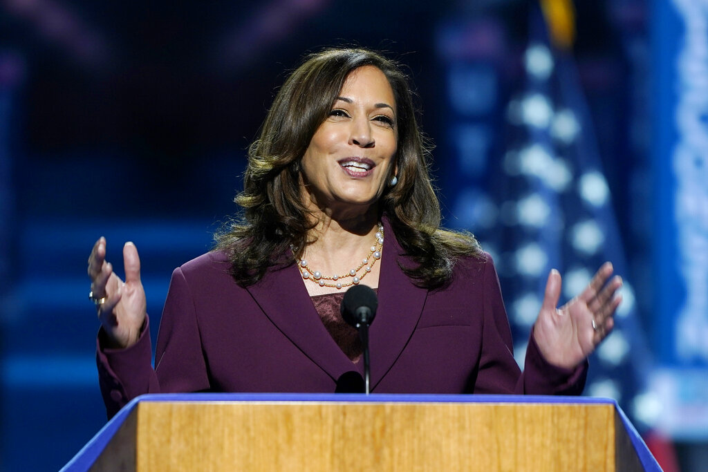 Democratic vice presidential candidate Sen. Kamala Harris, D-Calif., speaks during the third day of the Democratic National Convention, Wednesday, Aug. 19, 2020, at the Chase Center in Wilmington, Del. (AP Photo/Carolyn Kaster)