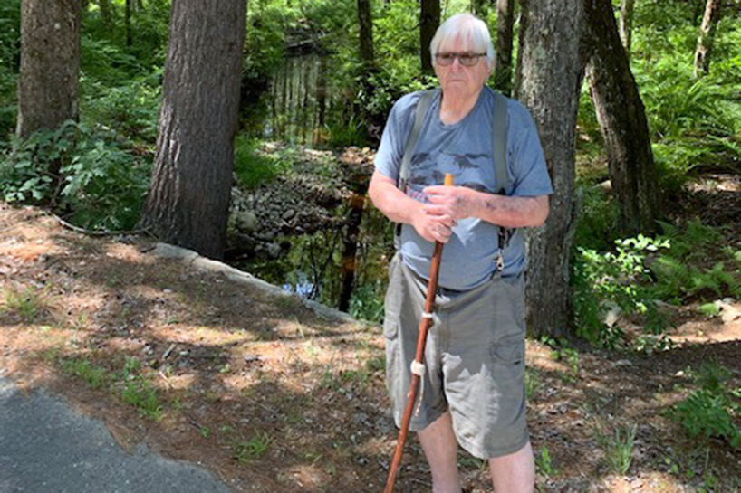 Courtesy photo Mason resident Ron Dube, a retired Nashua science teacher, stands near a portion of Black Fly Brook, the previously unnamed waterway that runs through Dube's property.
