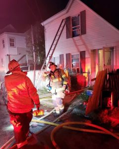 Kerrigan, who was first on the scene, reported smoke showing from the building. The residents, by then safely outside, told him a second-floor bedroom and bathroom were ablaze.