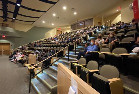 Courtesy photo Participants and guests attending Nashua Community College Department of Nursing's annual pinning ceremony are spread out in the school's auditorium for the event, which was postponed from May due to COVID-19 pandemic.