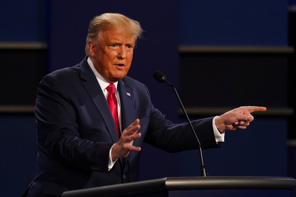 President Donald Trump gestures while speaking during the second and final presidential debate Thursday, Oct. 22, 2020, at Belmont University in Nashville, Tenn. (AP Photo/Patrick Semansky)