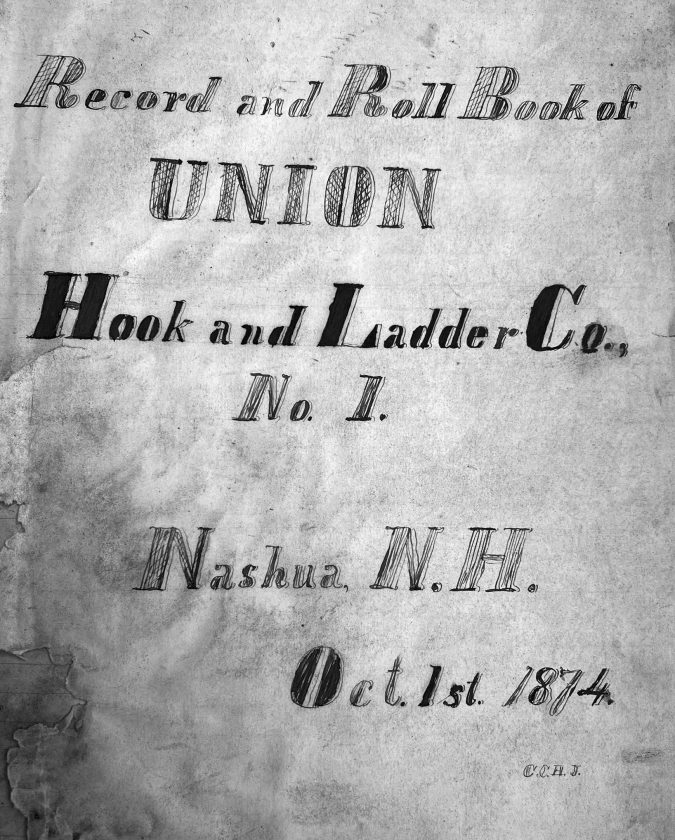 As does pretty much anything of historical value, the book, titled “Record and Roll Book of Union Hook and Ladder Co. No. 1, Nashua, N.H., Oct. 1st, 1874,” tells us a lot about the procedures, traditions and the day-to-day operations that firefighters, then called firemen, practiced in the era of hand tubs, hose wagons, steamers, boilers and so-called hook and ladder rigs, so-named for the obvious – they carried the ladders that the men of the company set and climbed to fight fires and rescue people through windows – and the fact the men also toted huge hooks and ropes to pull combustible materials out of the fire’s path.