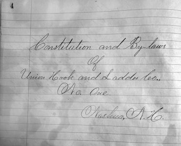 - Courtesy photo Flowery, nearly perfect cursive writing was popular among record-keepers of the 19th and early 20th century. This example introduces the reader to the constitution for Nashua’s 1870s Union Hook & Ladder Co. No. 1. (Courtesy photo)