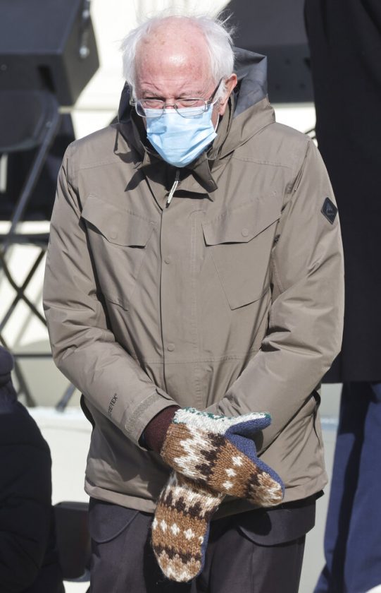 Ellis, a Vermont elementary school teacher who has a side business making mittens out of recycled wool, gave Sanders a pair as a gift, and he wore them to President Joe Biden’s inauguration. His fashion look, also featuring a winter jacket made by Burton Snowboards, sparked countless memes prompted by the photo taken by Agence France-Presse: The former presidential candidate could be found on social media timelines taking a seat on the subway, the moon and the couch with the cast of “Friends,” among other creative locales.