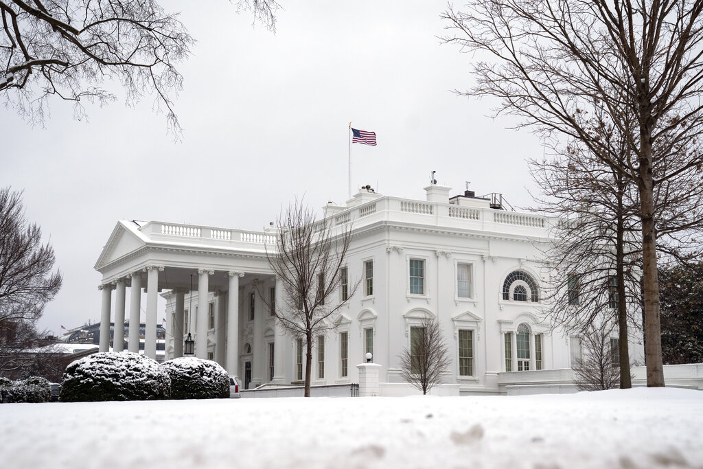 In this Feb. 1, 2021, photo, snow covers the ground at the White House in Washington. Only a fragment of Americans believe democracy is thriving in the U.S., even as broad majorities agree that representative government is one of the country’s bedrock principles, according to a new poll from The Associated Press-NORC Center for Public Affairs Research. Just 16% of Americans say democracy is working well or extremely well, a pessimism that spans the political spectrum. (AP Photo/Evan Vucci)