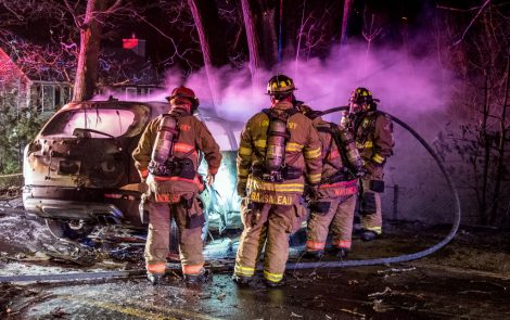 Police officers and firefighters were notified on their way to the scene that callers were reporting a car “fully engulfed in flames,” but it was unknown at that point whether anyone was in the car.