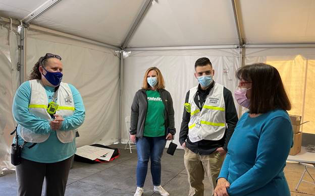 MERRIMACK – U.S. Rep. Annie Kuster (NH-02) toured a mass vaccination site in Merrimack, made possible by a public-private partnership between Fidelity Investments and the Nashua Division of Public Health and Community Services, Greater Nashua Public Health Network. During the tour, Kuster spoke with public health officials about the impact of her work in Congress, the federal pandemic response and the efficacy and safety of COVID-19 vaccines.