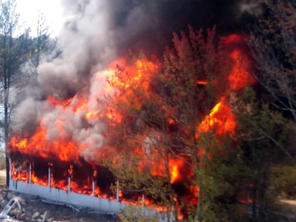 Those inside at the time were able to escape the burning building, but one of the contractors sustained burn injuries to his forearms, Booth said.