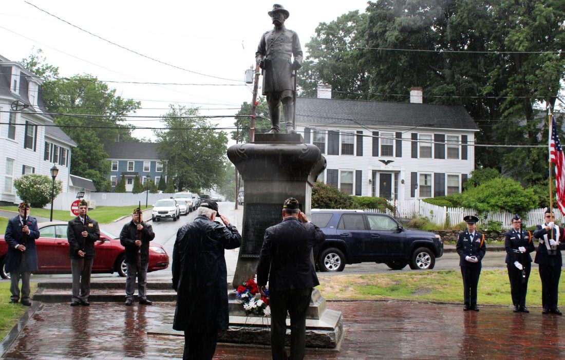 - Telegraph photo by DEAN SHALHOUP Members of the Nashua High School North and South ROTC program, at left, joined representatives of Nashua military and veterans organizations for a rather soggy series of ceremonies in honor of Memorial Day. The group gathered around the statue of Civil War General John G. Foster for the first of four ceremonies. (Telegraph photo by DEAN SHALHOUP)