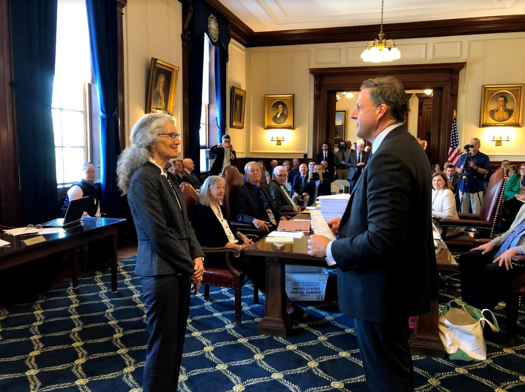 Rep. Muriel Hall, D-Bow, winner of the Merrimack County District 23 House special election held on June 8, was sworn into office today by Gov. Chris Sununu. (Photo by PAULA TRACY)
