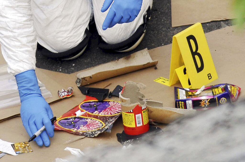 ** RETRANSMISSION FOR ALTERNATE CROP ** Evidence, including a box labeled "Silver Salutes," right, is spread in an alley on the property of a house where Faisal Shahzad lived, in Bridgeport, Conn., Tuesday, May 4, 2010. Shahzad was taken into custody late Monday by FBI agents and New York Police Department detectives while trying to leave the country. (AP Photo/Jessica Hill)
