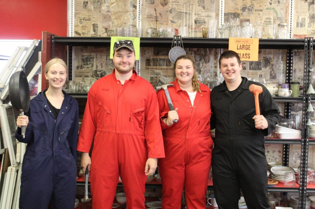 “Basically, we have eight different packages,” Cherry said. “They all come with a certain amount of time and a certain number of items that you get to obliterate. Let’s say you get the Ultimate Showdown, that’s for up to four people. You pick out your glassware, you get to choose the music and other stuff like that to personalize your experience.”