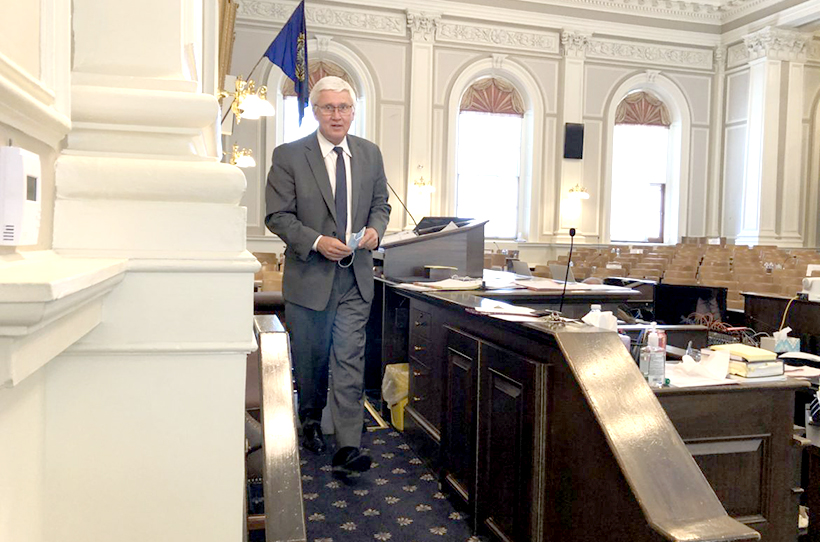 Senate President Chuck Morse prepares to preside over the first in-person Senate session of 2021, held in Representatives Hall in May. (Photo by PAULA TRACY)